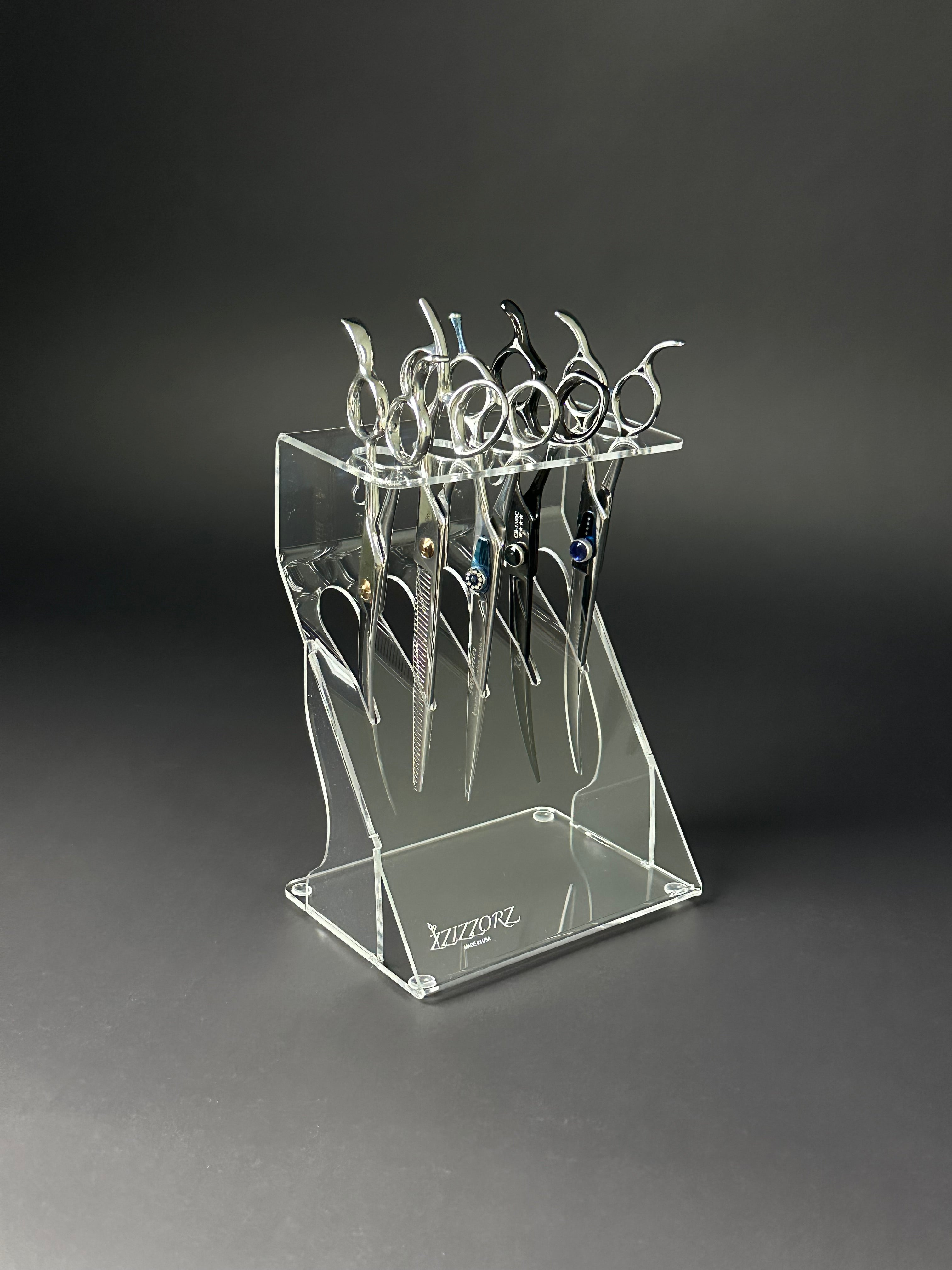 The device is designed to effectively hold either single or multiple clipper blades, or hair clippers with the blade attached, that will fit in the opening of the device.